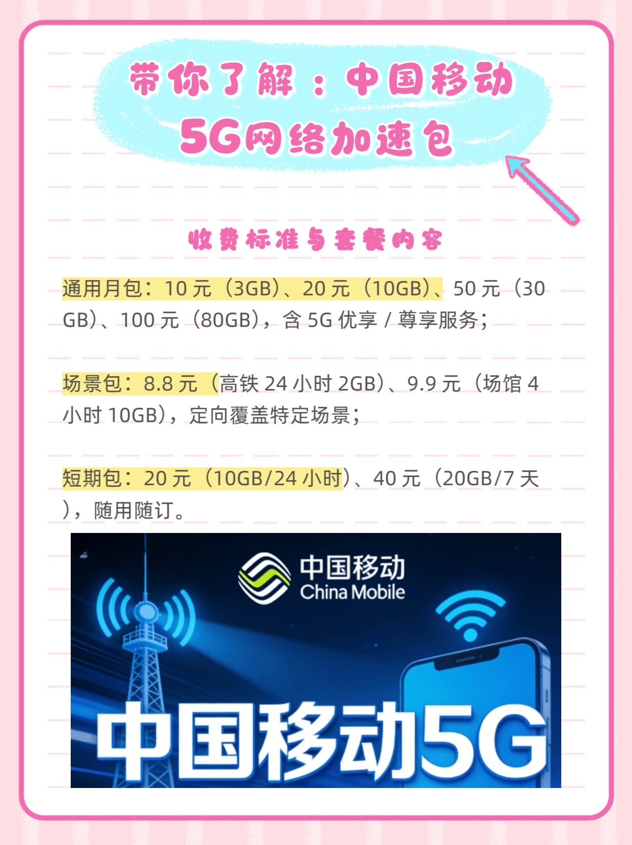 移动5G加速包短信办理是真实的,用户可以通过短信方式办理移动推出的5G加速包业务,用于提升网络速度。具体办理方式和资费标准可以咨询移动客服或查看官方渠道信息。...